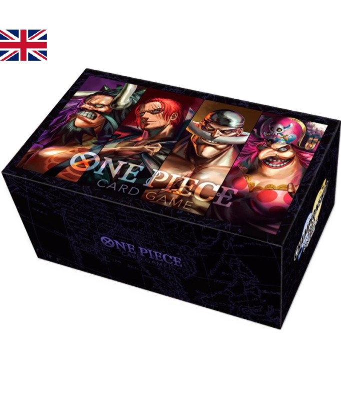 Dieses Set enthält : - Eine spezielle „Leader“-Karte von Whitebeard (Hiroshige). - Ein exklusiver Teppich der 4 Kaiser. - Eine exklusive Box der vier Kaiser.