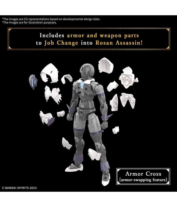 Bandais „30MF (30 Minutes Fantasy)“-Figurenserie ermöglicht es dir, deine eigenen Fantasy-Figuren und Charaktere zu erstellen! Das Starterset enthält neben der „Silhouette“ (Grundkörper) auch Rüstungs- und Waffenteile. Der Körper des Rozen Assassin ist derselbe wie der des 30MF Rozen Knight; die „Silhouette“ ist vollständig beweglich wie ein menschlicher Körper, einschließlich beweglicher Achsen an Kopf und Hals, die natürliche Flexibilität ermöglichen. Die Schultergelenke wurden mit großer Sorgfalt entworfen, um die Körperlinie auch in kühnen Posen intakt zu halten; die beweglichen Achsen an Brust, Rumpf und Taille arbeiten mit dem Schiebemechanismus an der Basis des Hüftgelenks zusammen, um natürliche Posen zu erreichen. Rüstungs- und Waffenteile sind enthalten, die mit der „Silhouette“ kombiniert werden können, um sich in den Rozen Assassin zu verwandeln! Zwei Dolche sind als Waffen enthalten; die flexible Bewegung wird durch das Anbringen der Schulter- und Hüftpanzerung über das Gelenk auf dem Rücken erreicht. Das Attribut des Elementkerns ist „Wasser“. Das Gesichtsdesign und die Farbe sind anders als beim Liber Assassin (separat erhältlich). Bestelle ihn noch heute für deine eigene Sammlung! Enthält: Dolch (x2) Rüstungsteile (x1 Set) Handteile (x1 Set) Gelenkteile (x1 Set)