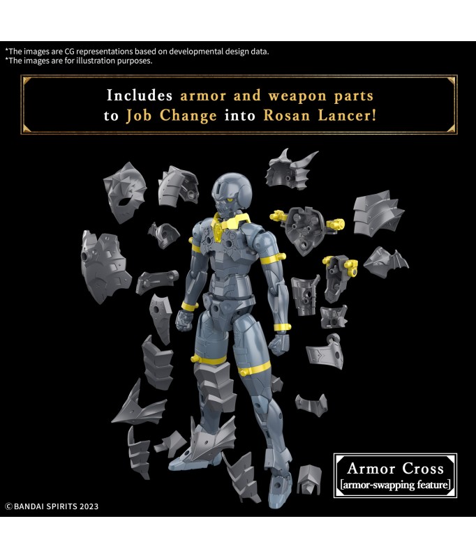 Bandais „30MF (30 Minutes Fantasy)“-Figurenserie ermöglicht es dir, deine eigenen Fantasy-Figuren und Charaktere zu erstellen! Das Starterset enthält neben der Basis-Silhouette (Grundkörper) auch Rüstungsteile und Waffen. Der Körper des Rozen Lancer ist derselbe wie der des 30MF Rozen Knight; die „Silhouette“ ist vollständig beweglich wie ein menschlicher Körper, einschließlich beweglicher Achsen an Kopf und Hals, die natürliche Flexibilität ermöglichen. Die Schultergelenke wurden mit großer Sorgfalt entworfen, um die Körperlinie auch in kühnen Posen intakt zu halten; die beweglichen Achsen an Brust, Rumpf und Taille arbeiten mit dem Schiebemechanismus an der Basis des Hüftgelenks zusammen, um natürliche Posen zu erreichen. Rüstungs- und Waffenteile sind enthalten, die mit der „Silhouette“ kombiniert werden können, um sich in den Rozen Lancer zu „verwandeln“! Seine Waffen sind eine Lanze und ein Schild; flexible Bewegung wird durch das Anbringen der Schulter- und Hüftpanzerung über das Gelenk auf dem Rücken erreicht. Das Attribut des Elementkerns ist „Blitz“. Das Gesichtsdesign und die Farbe unterscheiden sich vom Liber Lancer (separat erhältlich). Enthält: Lanze Schild Rüstungsteile (x1 Set) Handteile (x1 Set) Gelenkteile (x1 Satz)