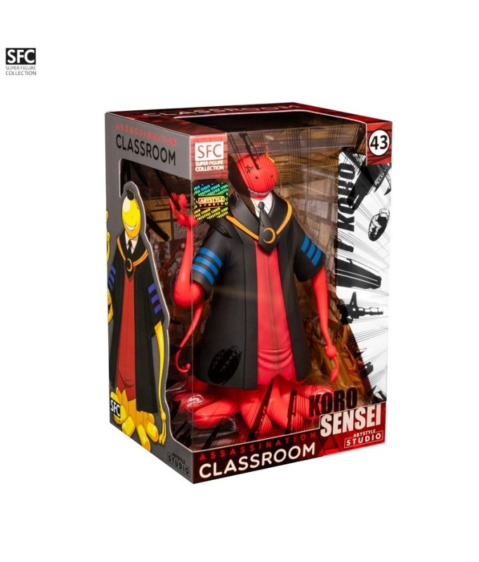 Nachdem er den Mond zerstört hat, kommt Koro Sensei auf die Erde, nicht nur, um eine Klasse von Dummköpfen auszubilden ! Dieser schelmische außerirdische Oktopus trägt die Uniform seines Lehrers und ändert seine Hautfarbe je nach seinen Gefühlen. Hier in roter Version, die seine Wut zum Ausdruck bringt.