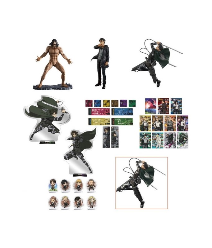 > Los A: Figur Eren Yeager (Titan) 30cm > Los B: Figurine Eren Yeager 22cm > Los C: Figurine Levi Ackerman 17cm > Los D: Hans Zoe Acrylfiguren 18cm > Los E: Acrylfiguren Levi Ackerman 15.5cm > Los F: Handtuch 60cm oder Handtuch 21cm > Los G : Poster A3 > Los H: SD Acrylic Figures 7cm > Last One prize : Levi Ackerman Figur 17cm Das Bild kann vom tatsächlichen Produkt abweichen. * Der Inhalt kann ohne Vorankündigung geändert werden.