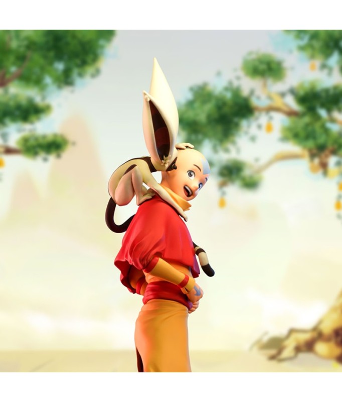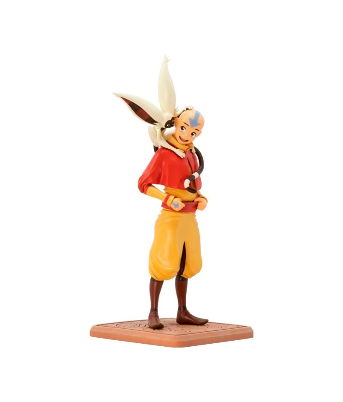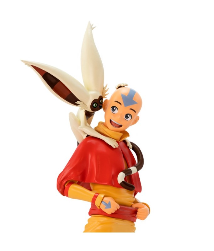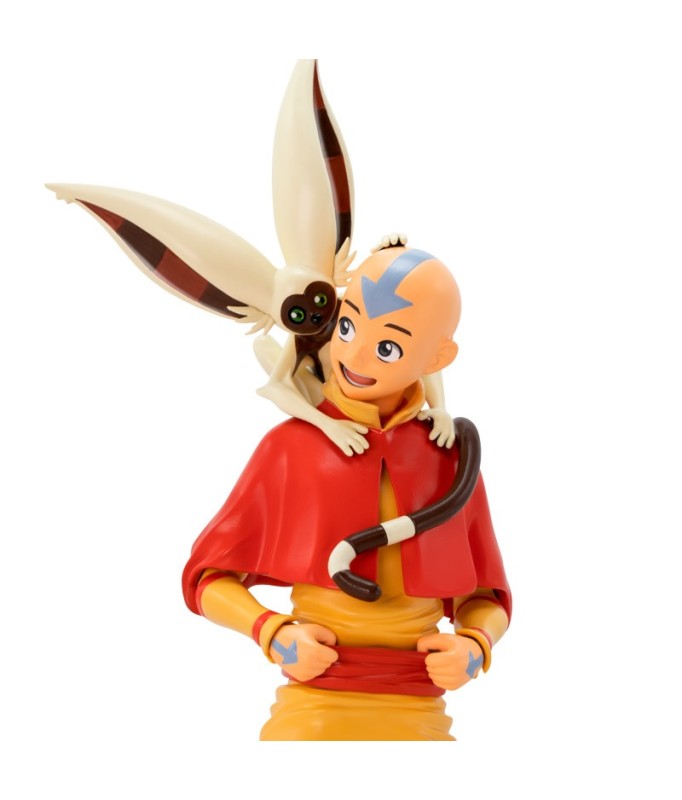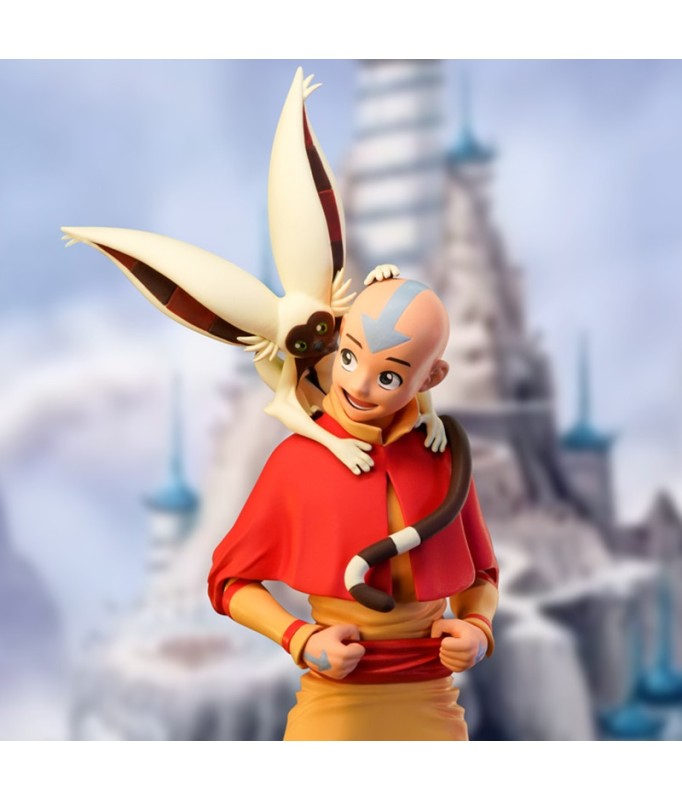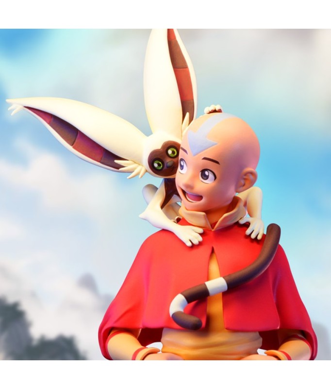 Bringen Sie mit dieser Aang SFC-Figur wieder Gleichgewicht in Ihre Sammlung. Mit seinem treuen Begleiter Momo an seiner Seite steht Aang auf einem Steinsockel, der die Embleme aller 4 Elemente zeigt: Wasser, Erde, Feuer und Luft.