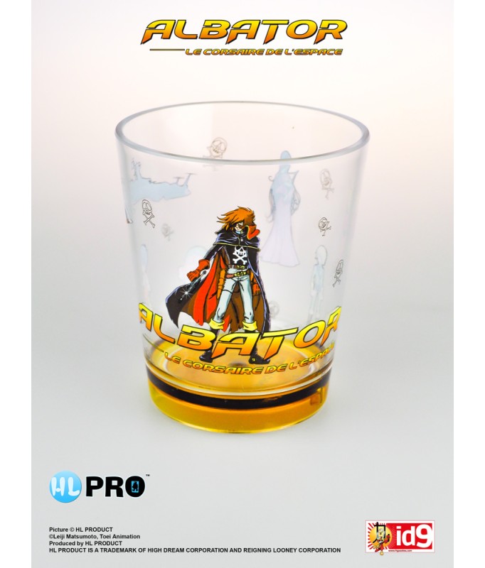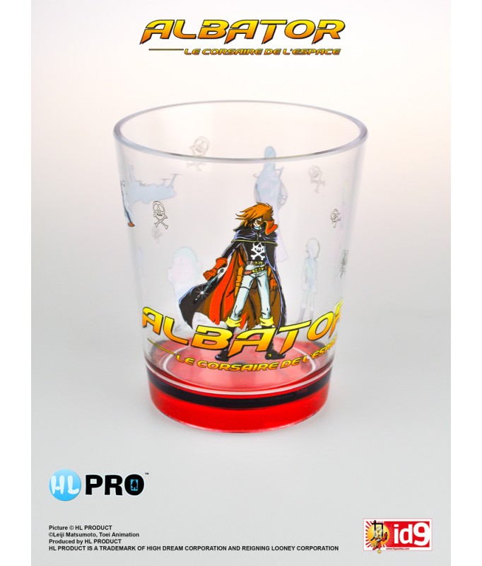 Plastikglas mit offizieller Harlock-Lizenz. Größe: 10 cm hoch, ausladende Form, 8 cm hoher Durchmesser. - 3 Farben erhältlich. Die Lieferung eines Sets enthält : - 3x blauer Hintergrund - 1x roter Hintergrund - 1x gelber Hintergrund. Jedes Glas ist durch eine Plastikfolie geschützt (kein Blister, keine Schachtel).