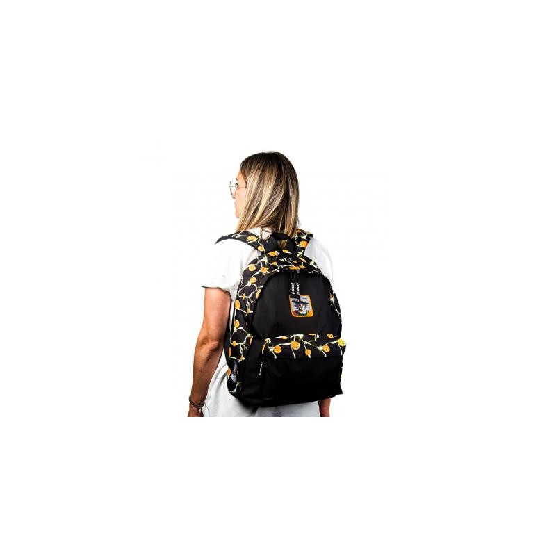 Rucksack mit verstellbaren Schultergurten und Tasche vorne.