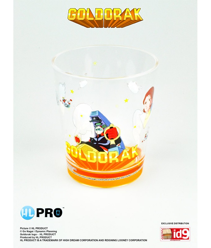Plastikgläser mit Goldrake-Lizenz, Größe: 10 cm hoch, ausladende Form, 8 cm hoher Durchmesser. - 3 Farben erhältlich. Die Lieferung eines Sets enthält : - 3x blauer Hintergrund - 1x roter Hintergrund - 1x gelber Hintergrund. Produkt ist durch eine Plastikfolie geschützt (kein Blister, keine Schachtel).