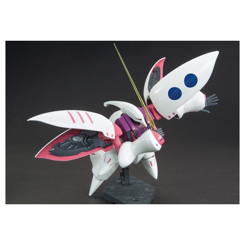 Dies ist ein beweglicher, hochwertiger Modellbausatz aus Spritzgusskunststoff, der ein Objekt aus dem Gundam-Universum darstellt. Er besteht aus weißem, transparentem Gelb, Dunkelgrau, drei Rosatönen und Blau und enthält Folienaufkleber für die Markierungen.