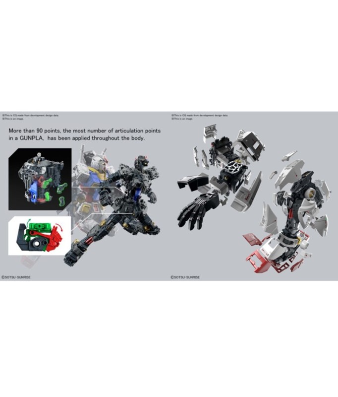 Sein Innenrahmen, der als Skelett dient, wurde im frühesten Stadium in der Geschichte der Perfect Grade-Reihe zusammengebaut und ist mit einer Gesamthöhe von etwa 18 cm auch der größte Rahmen in der Geschichte von Gunpla.
