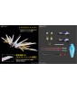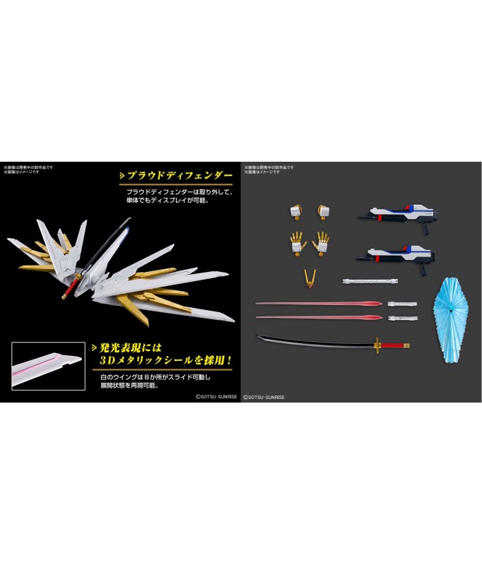 Für zusätzlichen Realismus sind 3D-Metallic-Aufkleber für einen leuchtenden Effekt enthalten. Die Klingenteile des mitgelieferten Schwertes „Futsunomitama“ weisen unterschiedliche Texturen mit zwei Oberflächenveredelungen auf.