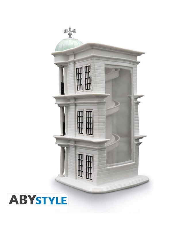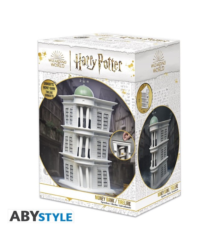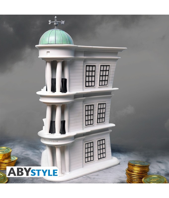 Bewahren Sie Ihr Geld bei der sichersten und berühmtesten Zaubererbank auf: Gringotts! Stecken Sie Galeonen, Sicheln und Knuts in diese wunderschöne Harry-Potter-Spardose von ABYstyle und Sie werden sehen, dass die Münzen herumwirbeln, bis sie die unterirdischen Galerien der Bank erreichen, aber nehmen Sie sich vor den Kobolden in Acht, sie werden immer da sein, um Sie zu beobachten!