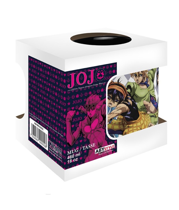 Erlebe das Abenteuer mit dieser Tasse aus „JoJo's Bizarre Adventure: Golden Wind“ - mit dem gesamten Team. Gerechtigkeit, Mut und Entschlossenheit in jedem Schluck ! – Tasse aus hochwertiger Keramik. Standardgröße (460 ml) – Verpackung: Fensterbox – Spülmaschinen- und mikrowellengeeignet