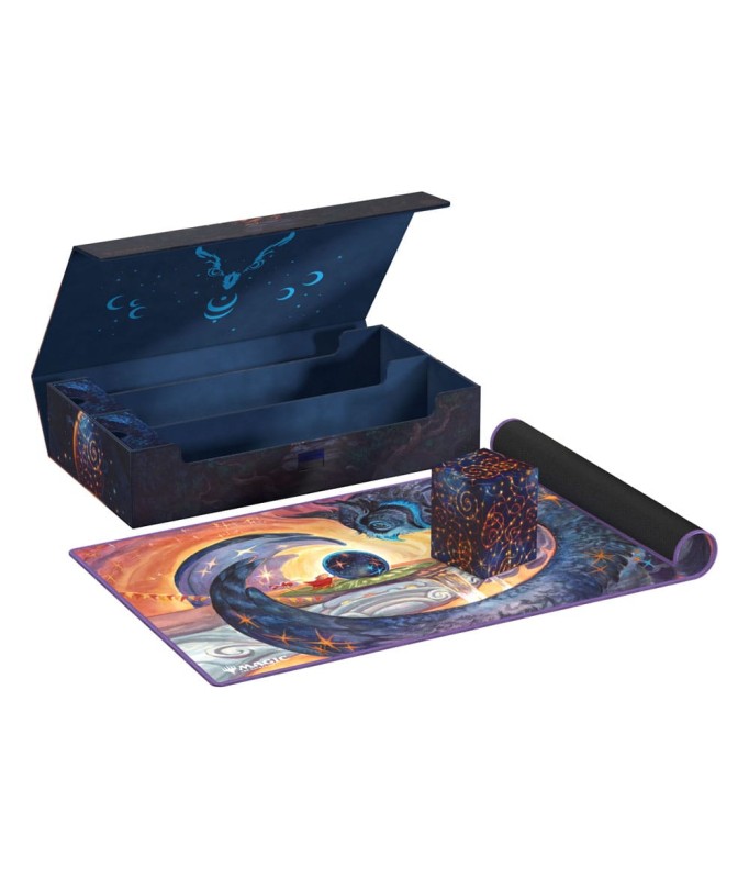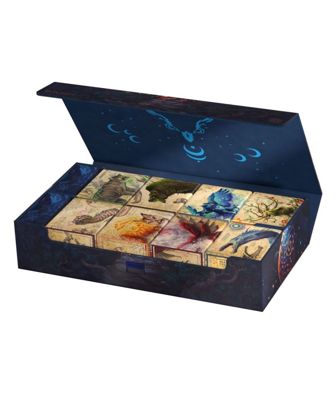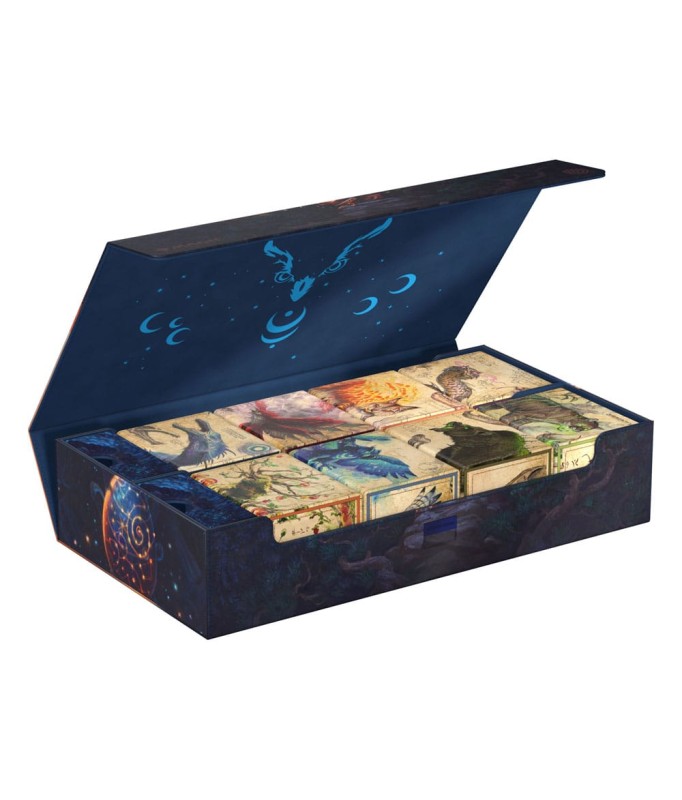 Die Omnihive 1000+ Matten dank zwei flexibel positionierbarer Magnetschubladen. Der Omnihive aus Xenoskin ist auch die ideale Wahl für die Aufbewahrung einer großen Sammlung einzelner Karten (bis zu 1000 Karten in Doppelhülle) oder eines Würfels. Elemente des Kunstwerks spiegeln sich auch im stilvollen Innenfutter aus Mikrofaser wider, während ein starker Magnetverschluss mit einem zusätzlichen ZnapClaw-Mechanismus dafür sorgt, dass Karten und Decks sicher in der Box bleiben.