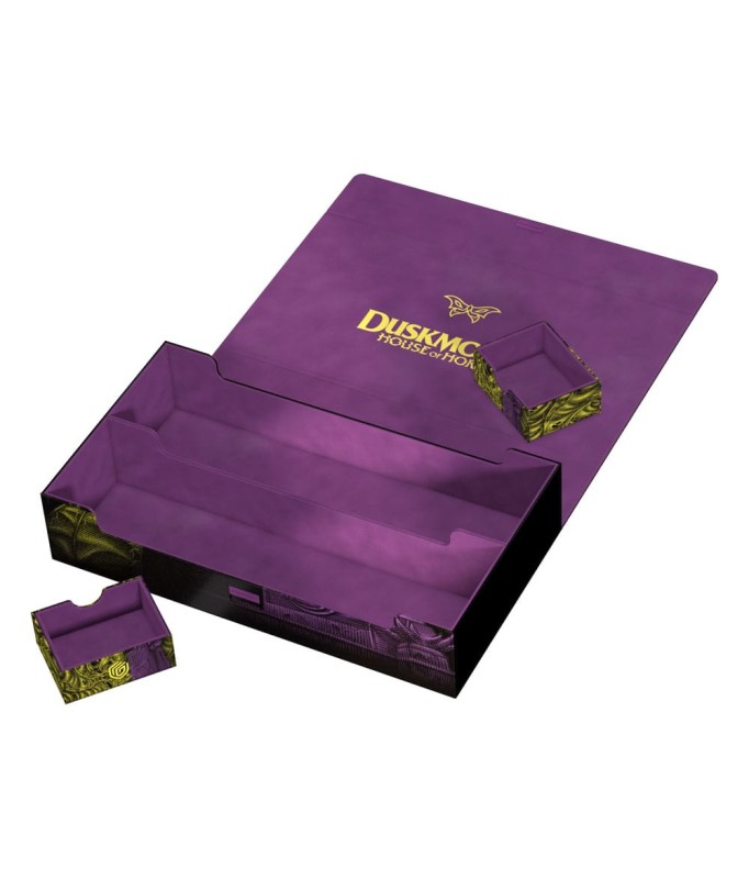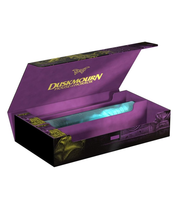 Valgavoth spukt nicht nur im Haus herum, sondern wacht auch über den Omnihive Ultimate Guard 1000+ Xenoskin für das neue Magic: The Gathering Duskmourn: House of Horror-Set. Der Omnihive bietet Platz für mehrere Deckboxen und/oder Spielmatten, aber auch über 1000 Einzelkarten (Double-Sleeve), die dort aufbewahrt und transportiert werden können. Die beiden flexibel positionierbaren Magnetschubladen eignen sich perfekt zur Aufbewahrung von Würfeln und Spielsteinen. Die Box besteht aus strapazierfähigem Xenoskin-Material und enthält offiziell lizenzierte Magic: The Gathering-Kunstwerke von Valgavoth, Terror Eater, vom Illustrator Pig Hands. Das hochwertige und stilvolle Mikrofaser-Interieur, ein leistungsstarker Magnetverschluss und unser ZnapClaw-Mechanismus sorgen dafür, dass der gesamte Inhalt des Omnihive sicher aufbewahrt wird. Zum Beispiel die Sidewinder 100+ Xenoskin-Deckboxen im gleichen Stil aus unserer Duskmourn: House of Horror-Reihe!