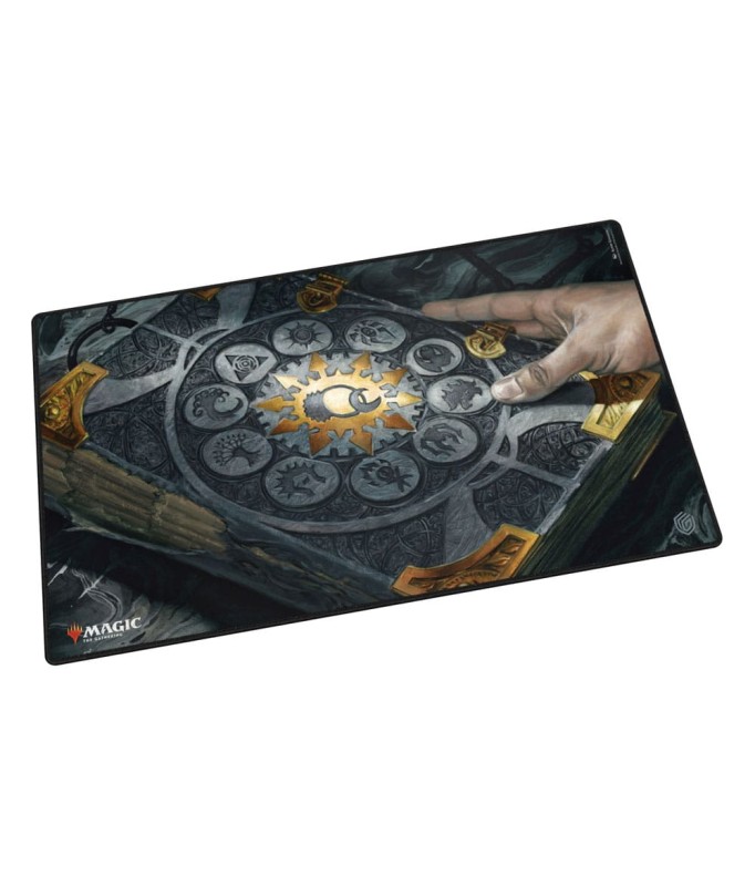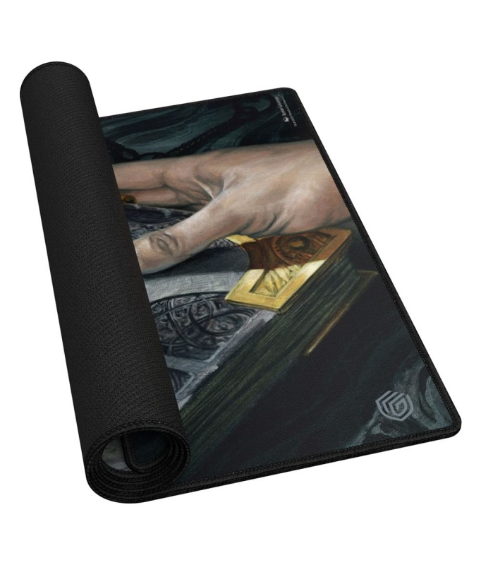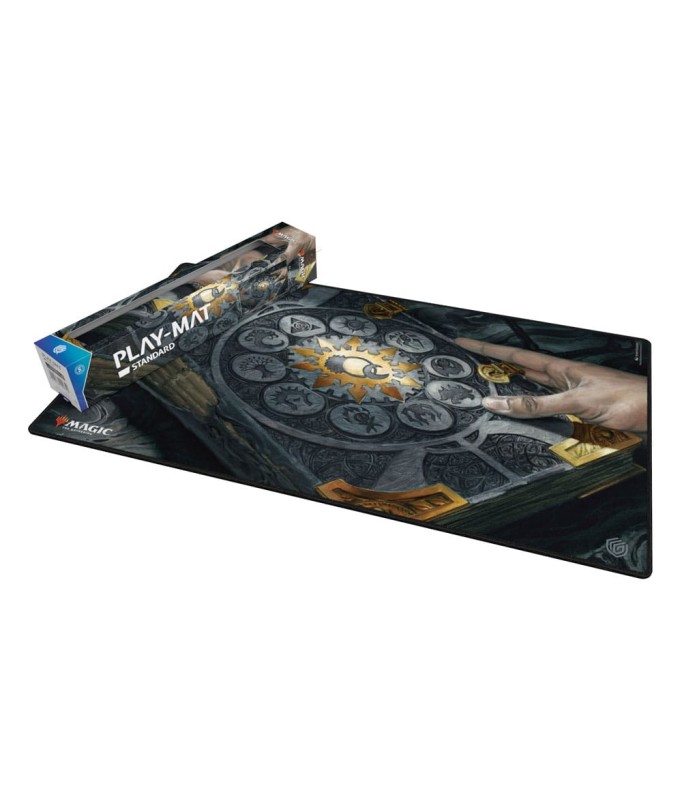 Dein Wissen ist hier sicher: Die hochwertige Spielmatte aus der Ravnica-inspirierten „Guild Summit“-Reihe zeigt die Magic: The Gathering „Tome of the Guildpact“-Illustration von Randy Gallegos. Die Unterseite der Spielmatte ist rutschfest und die Kanten sind vernäht, um ein noch langlebigeres Spielerlebnis zu gewährleisten.