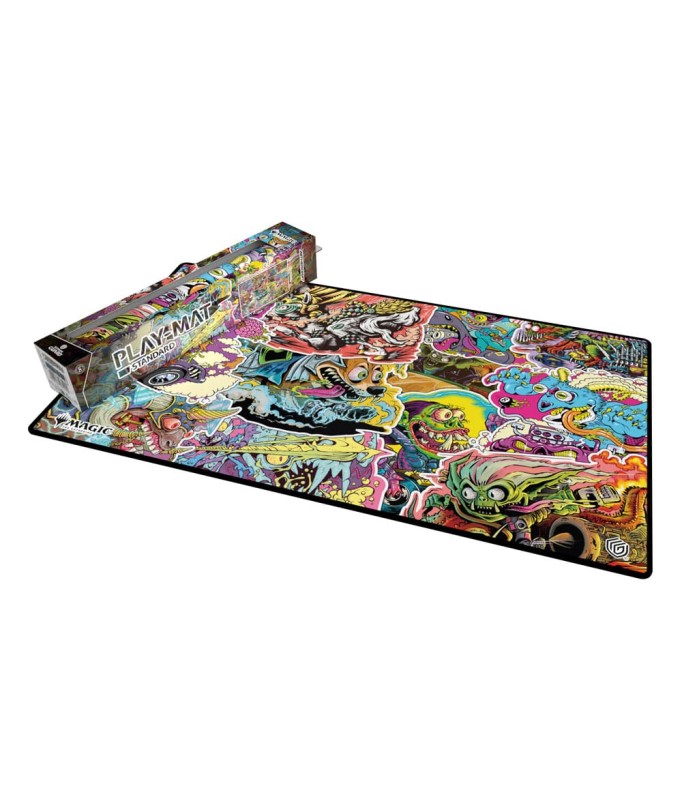 Die aufgeladenen Aetherdrift-Rennfahrer von Magic The Gatherings warten darauf, auf der Revved-Up Racers-Spielmatte in Sonderedition Gas zu geben! Die Spielmatte im Stickerbomb-Stil mit offiziell lizenzierten MTG-Illustrationen im Standardformat 61 x 35 cm steigert das Spielerlebnis und schützt Karten und Zubehör während des Spiels mit ihrer gepolsterten Oberseite und rutschfesten Unterseite. Die Spielmatte verfügt über einen hochwertig vernähten Rand.