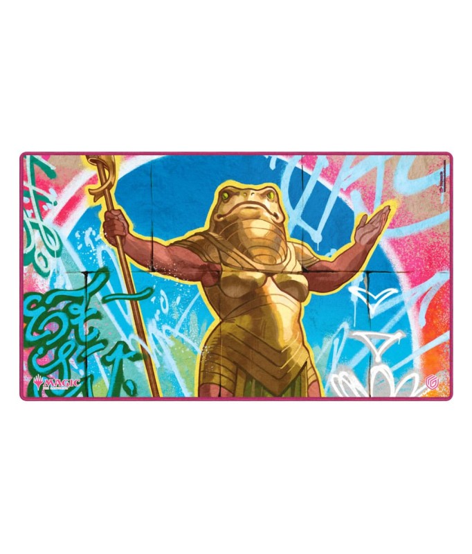 Die Spielmatte im Standardformat von 61 x 35 cm verfügt über offiziell lizenzierte Kunstwerke aus dem Aetherdrift-Set von Magic: The Gathering. Die weich gepolsterte Spielmatte mit rutschfester Unterseite steigert das Spielerlebnis, schützt Spielkarten und Zubehör und ist dank der vernähten Kanten noch langlebiger als die normale Spielmatte.