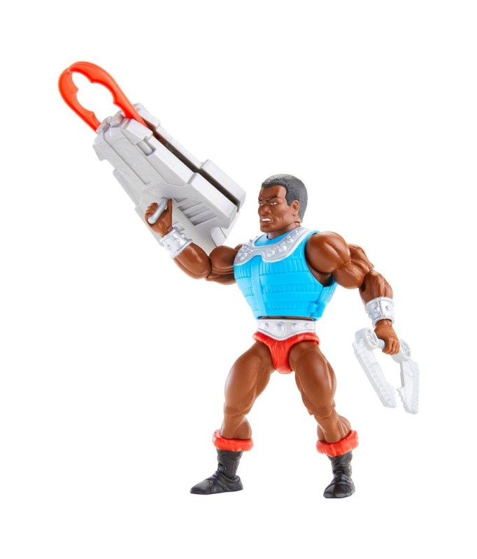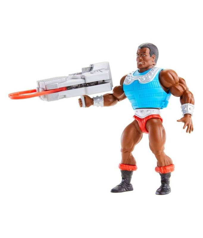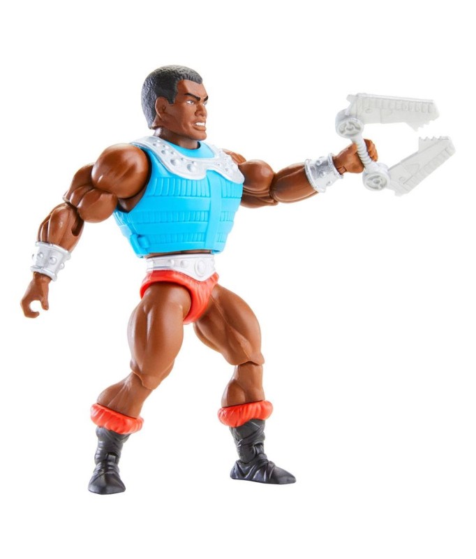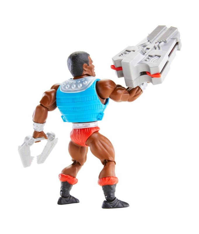 Voll bewegliche Sammelfigur aus der offiziellen "Masters of the Universe"-Lizenz, die den Charakter des "Clamp Champ" darstellt.