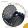 Innenfutter. Laptopfach. Vollständig gefüttertes und personalisiertes Interieur. Gepolsterte Rückenpolsterung. Ergonomische, verstellbare und gepolsterte Schultergurte. Hochwertige Verarbeitung und Reißverschlüsse. Gutes Tastgefühl. Strapazierfähiges und atmungsaktives Polyester-Crossbody-Material. Robust, geräumig und organisiert. Anpassbarer Trolley-Rucksack.
