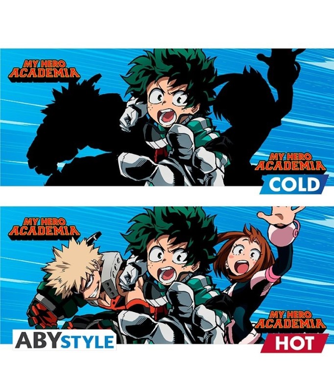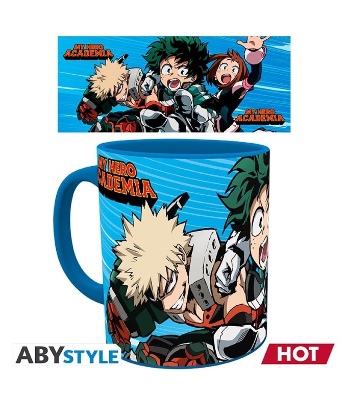Die zukünftige Generation ist sehr vielversprechend! Deku, Ochaco und Bakugo sind bereit, sich den Herausforderungen des Lebens als Helden auf dieser My Hero Academia-Tasse zu stellen!