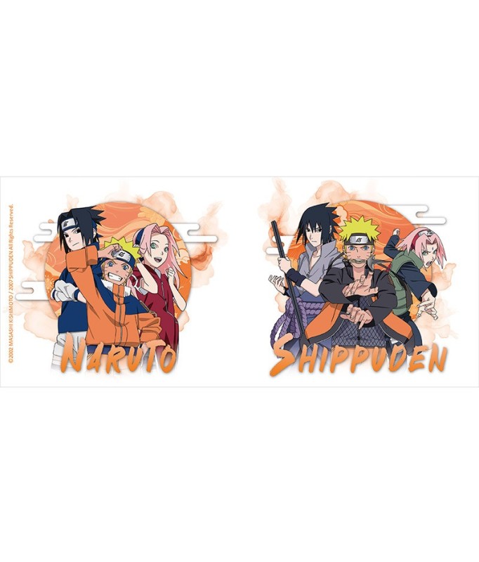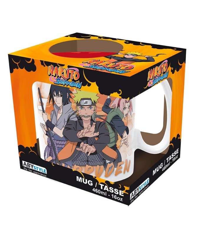 Unsere angehenden Ninjas sind seit ihrer Einschulung alle erwachsen geworden! Vor nicht allzu langer Zeit waren Naruto, Sasuke und Sakura nur Genins, die kleine, risikolose Missionen durchführten. Jetzt sind sie zu wichtigen Elementen beim Triumph der alliierten Shinobi-Streitkräfte geworden! Auf dieser Naruto Shippuden-Tasse finden Sie Ihre Lieblingsninjas von Team 7.