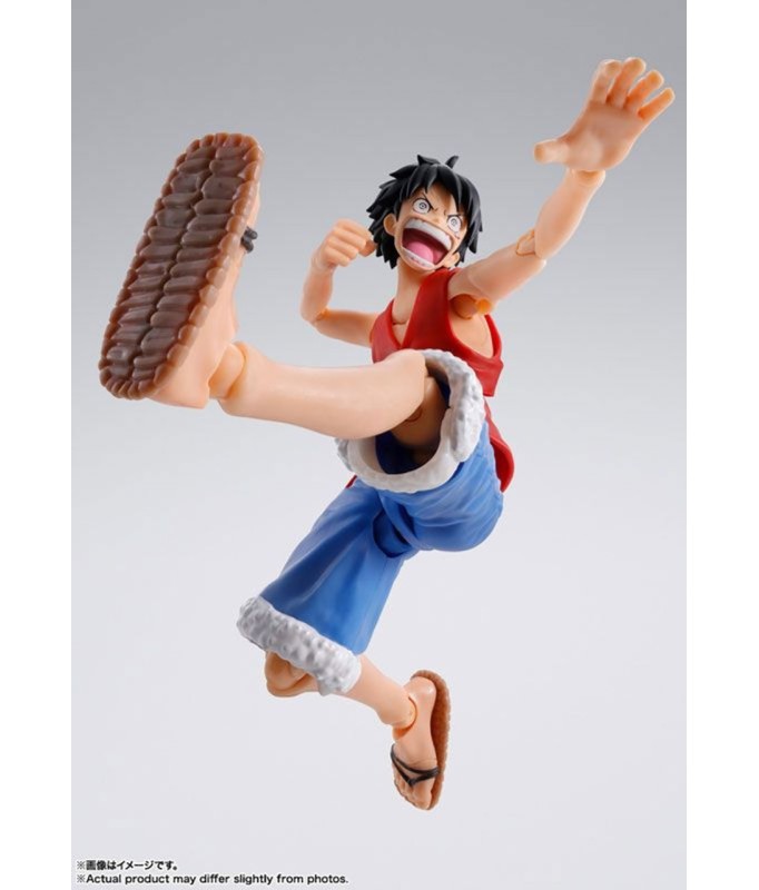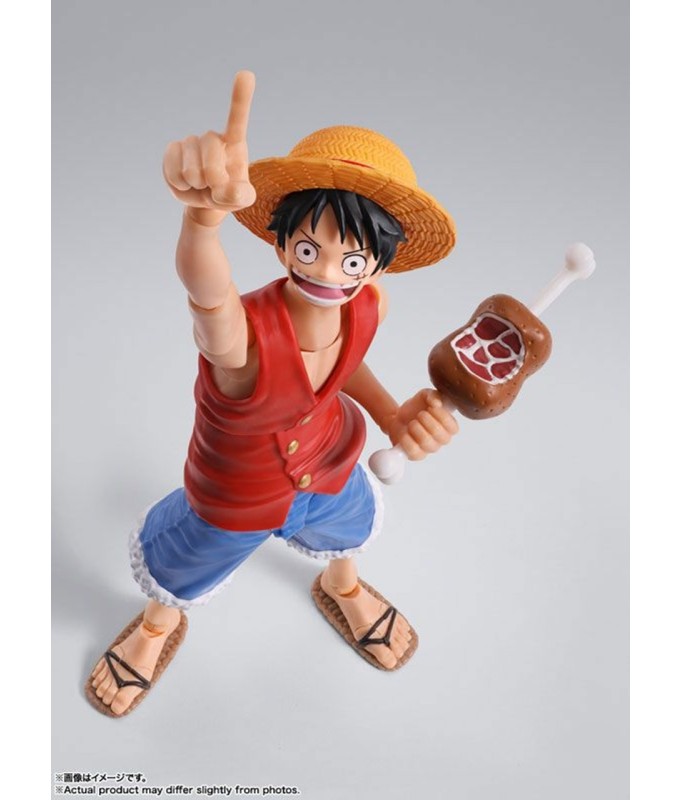 Tamashii Nations präsentiert im Rahmen von S.H. Figuarts die Figur von Monkey D. Ruffy. Es misst 14,5 cm und ist der Figur aus dem Anime „One Piece“ nachempfunden. Enthält Gesichtsplatten (3x lächelnde, 1x essende und 1x wütende Gesichter) und 1x Stück Fleisch.