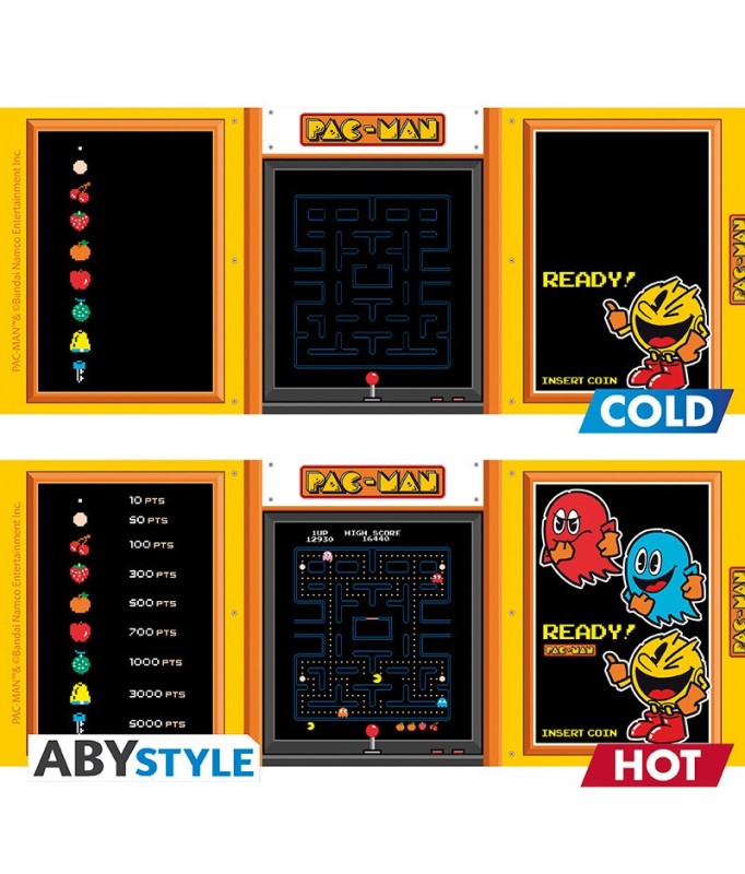 Erinnern Sie sich noch an all Ihre Pac-Man-Spiele, die Sie auf alten Arcade-Terminals gespielt haben? ABYstyle hat sich davon inspirieren lassen und diesen tollen thermo-reaktiven Becher entworfen, damit Sie mit jedem Schluck Ihres Heißgetränks in Ihre Kindheit zurückfallen können!