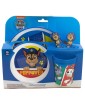 Dieses Set enthält: - einen rutschfesten Teller - eine rutschfeste Schüssel - ein rutschfestes Glas (260ml) - ein Besteckset
