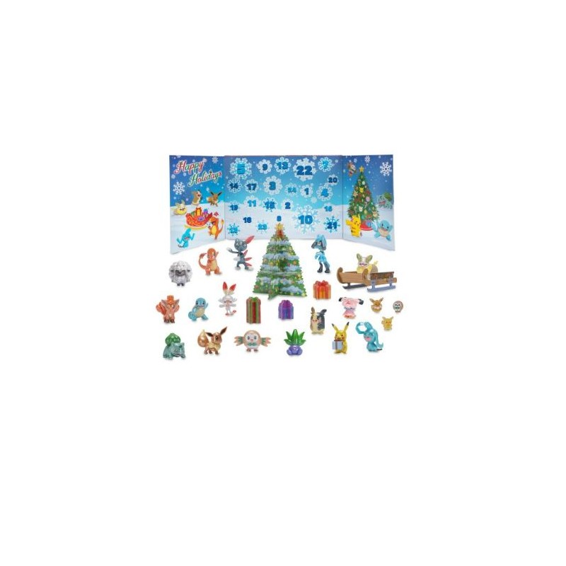 Adventskalender zu Weihnachten Der Pokémon-Adventskalender ist das Highlight der Weihnachtszeit. 16 exklusive Pokémon-Minifiguren, die es nur in diesem Adventskalender gibt, und 8 dekorative Teile zum Basteln machen diesen Adventskalender zu etwas ganz Besonderem. Öffne alle Türchen und feiere Weihnachten mit deinen liebsten Pokémon. Enthält: - 16 exklusive fertige 5 cm große Pokémon-Figuren. - 1 exklusives Weihnachts-Pikachu, 5 cm groß - 8 Weihnachtsaccessoires - 8 Weihnachtsaccessoires. Die Spezifikation: - Marke: Pokemon - Art : Adven Caldenar 2021 - Empfohlenes Alter: +4 - Anzahl der Geschenke im Kalender: 24 - Besondere Figur: Weihnachts-Pikachu - Kinder jeden Alters können die wunderbaren Überraschungen genießen, die Pokemon den Fans Jahr für Jahr beschert. - Gestalte und poste deine eigene Pokemon-Weihnachtsszene mit dem Pokemon-Kalender. - Jeder Tag der Feiertage ist eine aufregende Offenbarung, denn jedes nummerierte Türchen enthält 1 der 16 2-Zoll-Pokemon-Kampffiguren mit dynamischer Pose und wunderschönem Perlmuttfinish oder 1 der 8 Accessoires zum Thema der Feiertage. - Die 2 Zoll großen Pokemon-Figuren umfassen Pikachu, Squirtle, Bulbasaur, Vulpix, Eevee, Yamper und MEHR von deinen Favoriten! - Du musst sie alle fangen! unverbindliche Informationen und Fotos