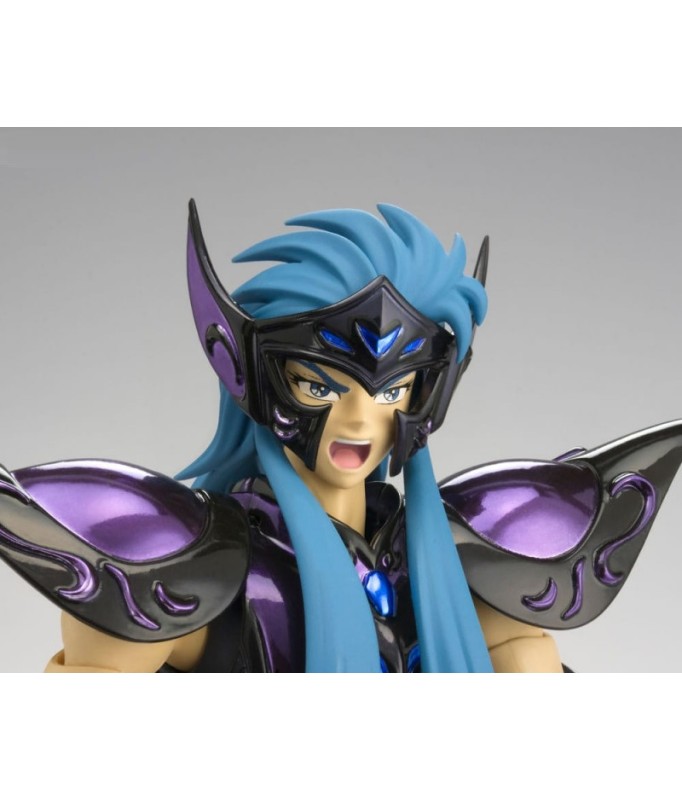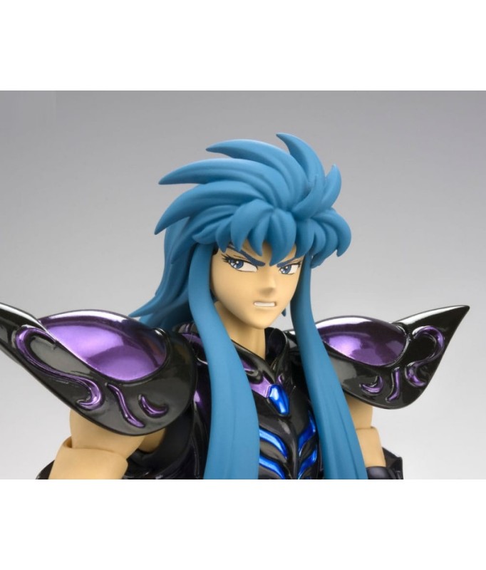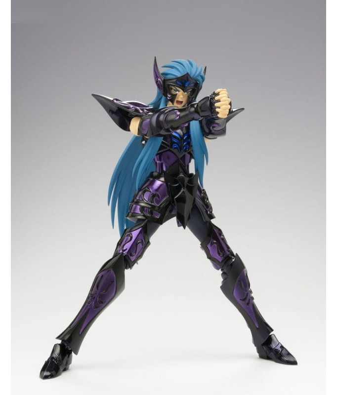 Lizenzierte Saint Seiya Figur vom Typ Myth Cloth EX, mit einem voll beweglichen Körper aus Plastik und einer Rüstung, die zum größten Teil aus Metall besteht. Die Figur kann an den Rüstungshalter (auch "Object" oder "Sockel" genannt), der mit der Figur geliefert wird, angepasst werden.