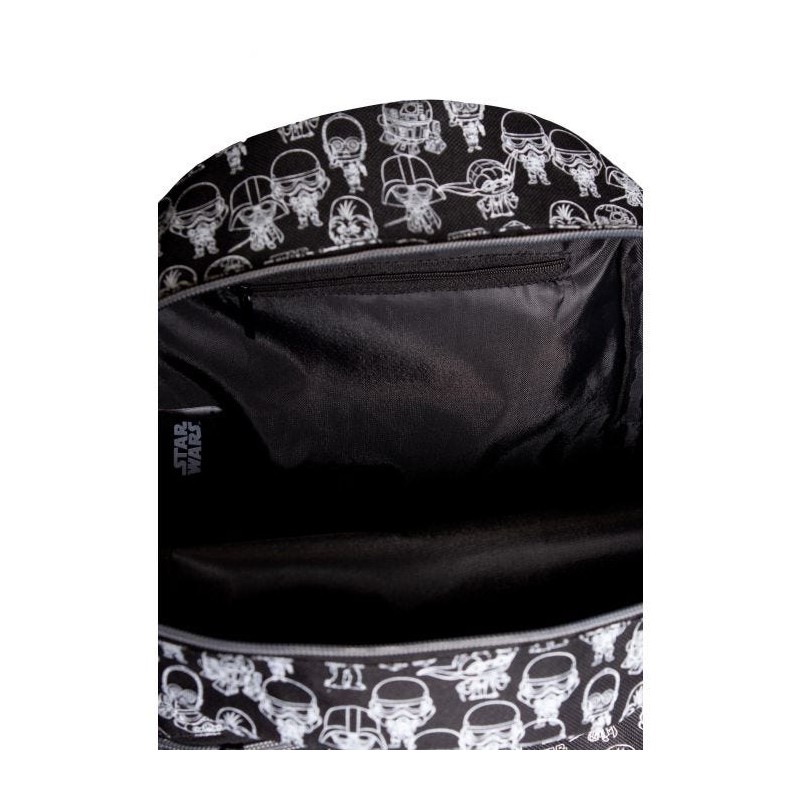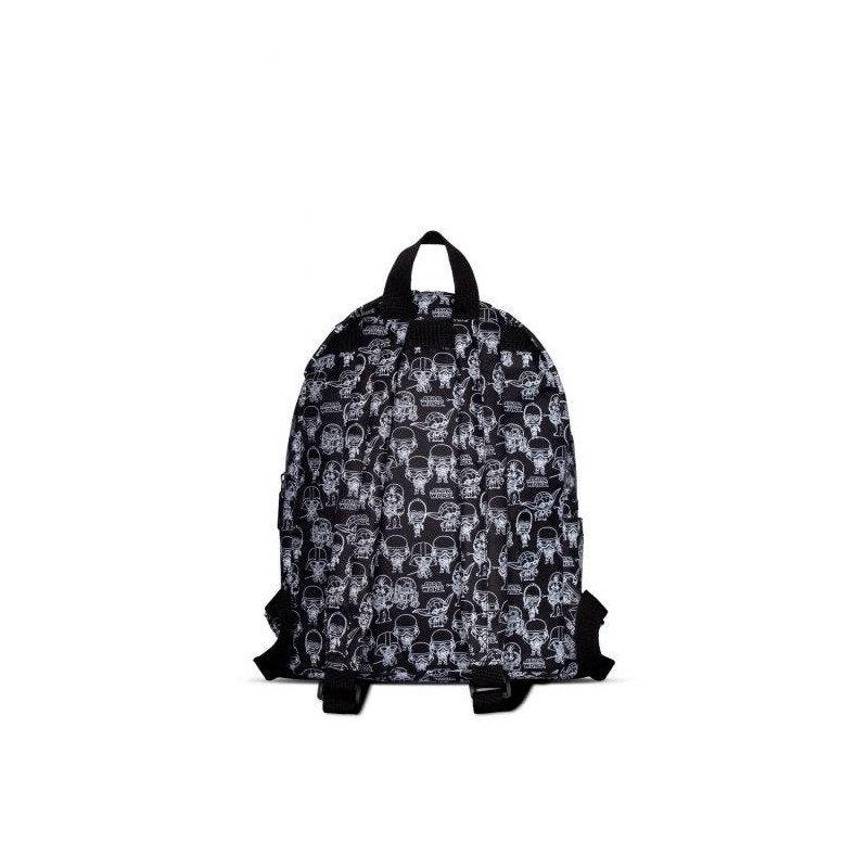 Rucksack mit verstellbaren Schultergurten und Tasche vorne.