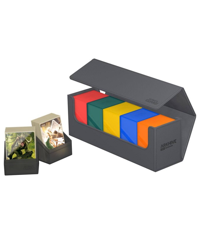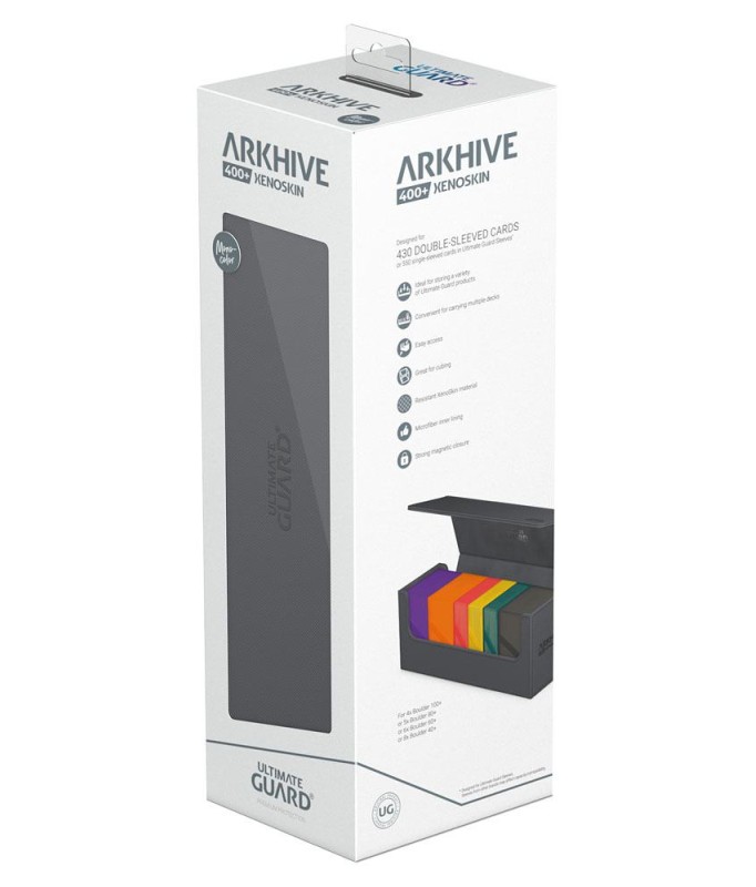 Zeigen Sie Ihre Farben von innen heraus mit unserem lebendigen und stilvollen monochromen Design. Der Arkhive ist für die Aufnahme von über 450 Karten mit doppelter Hülle, über 500 Karten mit einfacher Hülle oder über 850 Karten ohne Hülle im Standardformat optimiert und wird Sie nie im Stich lassen*.