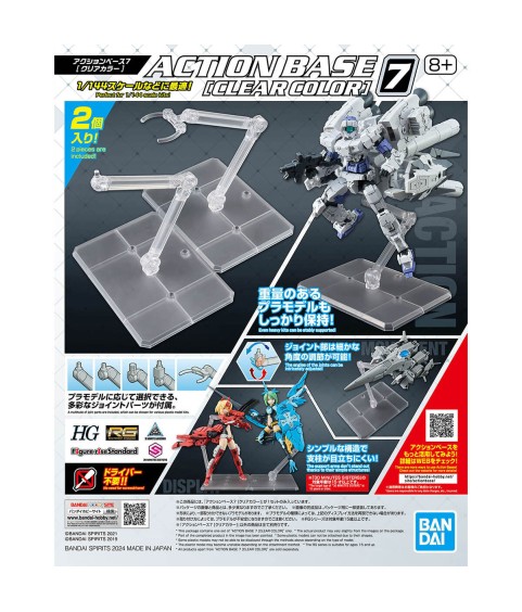 Bandai präsentiert seine siebte Action-Base, mit einem einfachen Design für einfache Handhabung! Die Struktur ermöglicht einen stabilen Halt von Modellen im Maßstab 1/144, und die Beweglichkeit der einzelnen Achsen unterstützt die Darstellung in einer Vielzahl von Posen! Verschiedene Gelenkteile und Armteile sind enthalten und können individuell angepasst werden; diese Basis kann ein Modell mit großem Volumen mit großer Leichtigkeit halten. Sie ist so konstruiert, dass sie besonders stabil ist und die Posen in der Luft gut unterstützt. Du erhältst zwei Bases.