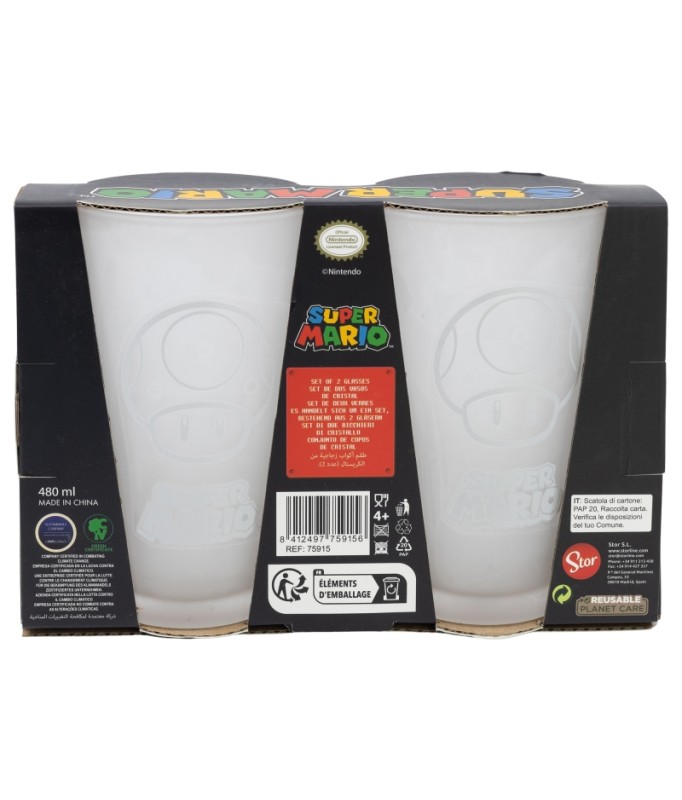 Elegantes Set aus zwei abgerundeten Glasgläsern im handlichen Format, die mit einigen der bekanntesten Lizenzen verziert sind. Hergestellt aus hochwertigem Borosilikatglas.
