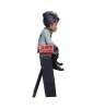 Die Figur hebt seine charakteristischen Details hervor: seine zweifarbige Frisur mit Irokesenschnitt (schwarz und orange), seine unverkennbare Jacke in Grau- und Gelbtönen sowie sein lässiges, aber einsatzbereites Aussehen.