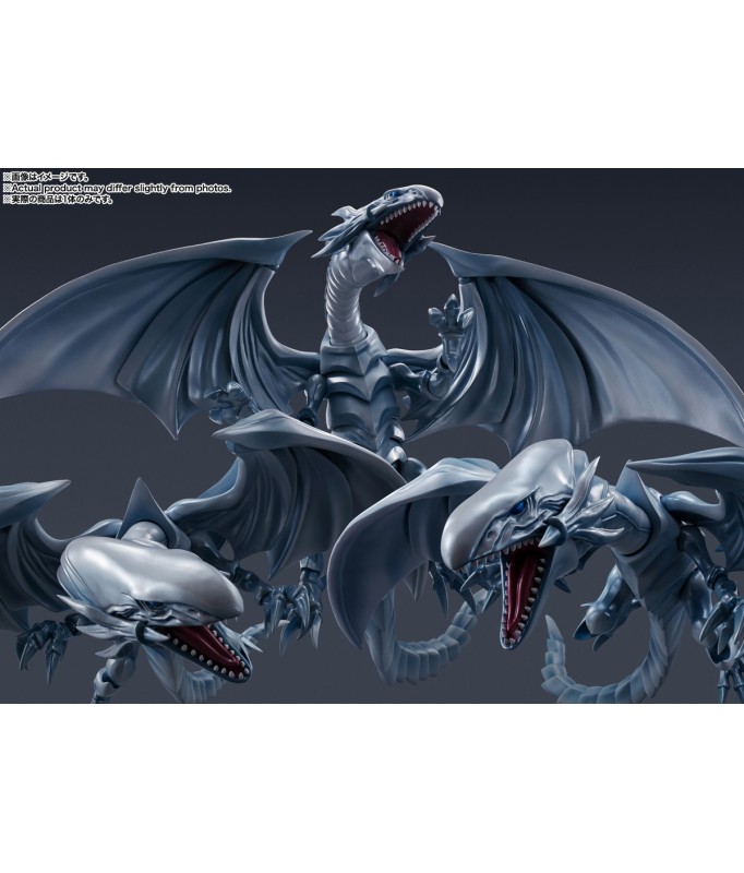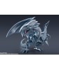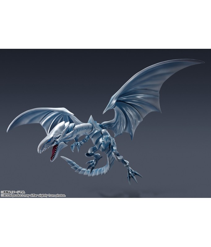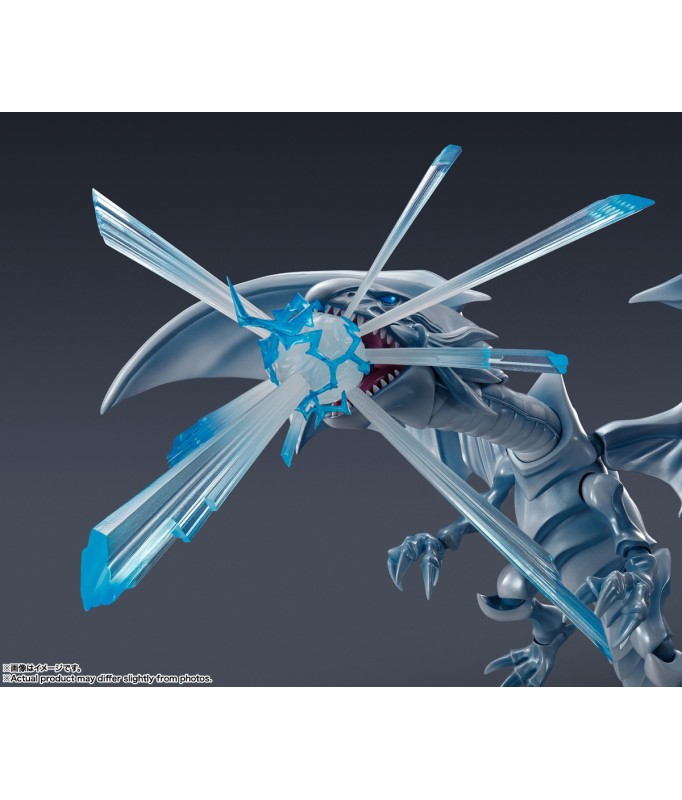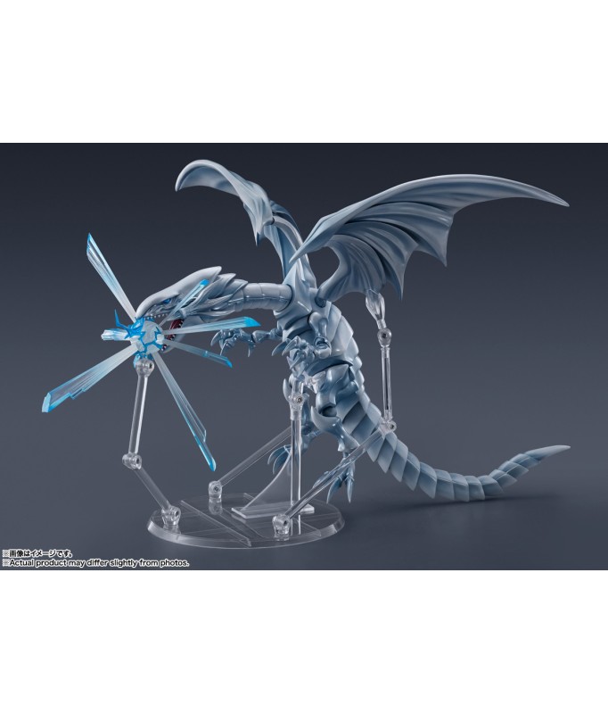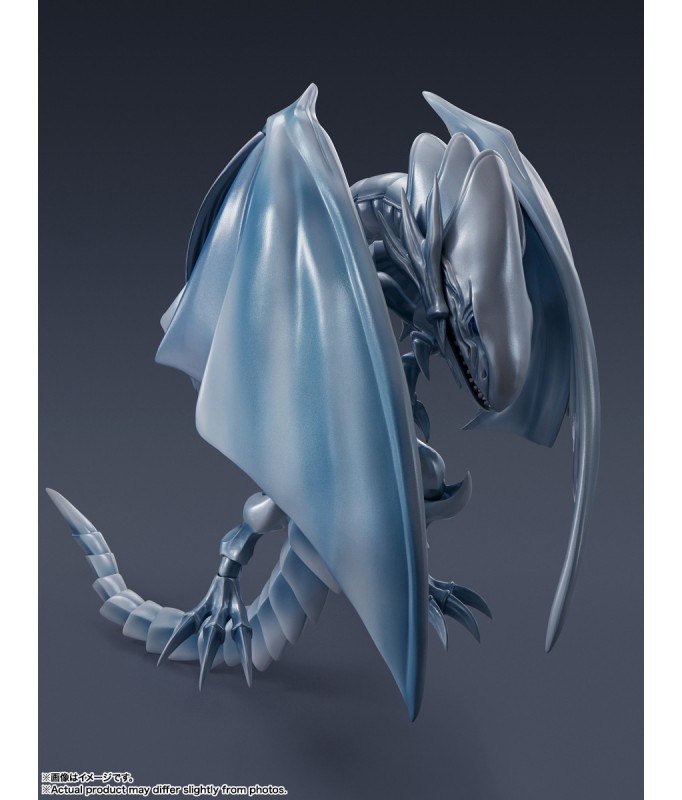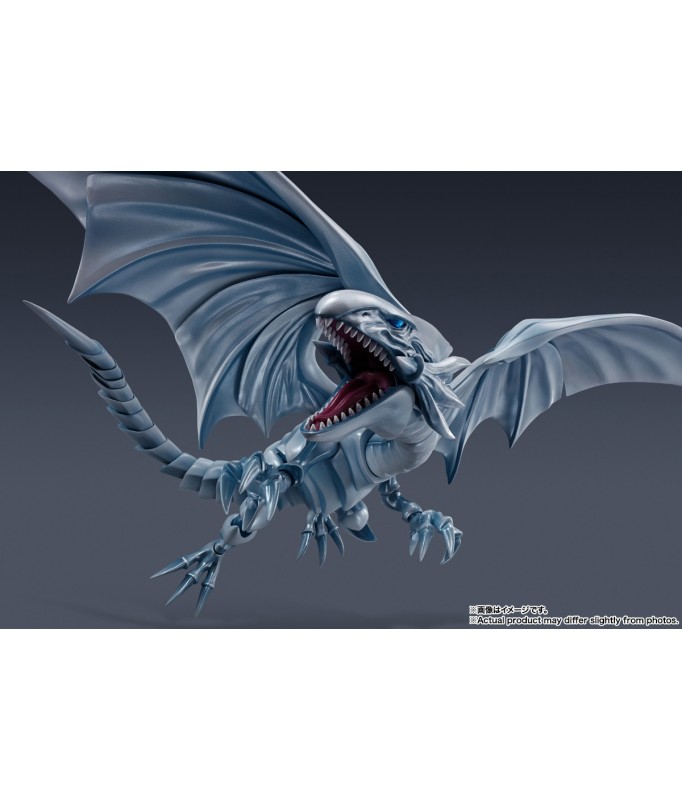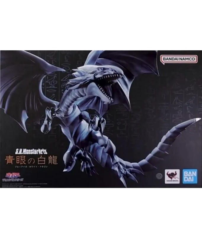 Der legendäre Blue Eyes White Dragon aus „Yu-Gi-Oh! Duel Monsters“ gesellt sich zur „S.H. MonsterArts“-Actionfigurenserie von Bandai! Dieses wunderschöne Biest wurde nach gründlicher Recherche der Charaktermaterialien sorgfältig geformt und bis ins kleinste Detail detailliert. Die bewährte Mobiltechnologie der S.H.MonsterArts-Serie ermöglicht viele dynamische Posen, bis hin zur Verteidigungsdarstellung, wenn es sich mit seinen Flügeln verhüllt! Es wird mit einem Satz leistungsstarker Destructive Explosive Gale-Effektteile und einer exklusiv gestalteten Basis zur Präsentation geliefert. Beschwöre es jetzt für deine eigene Sammlung! Figurengröße: Ungefähr 22 cm lang Materialien: ABS, PVC Inhalt des Sets: - Hauptfigur - Teileset mit zerstörerischem Explosiv-Gale-Effekt - Stand