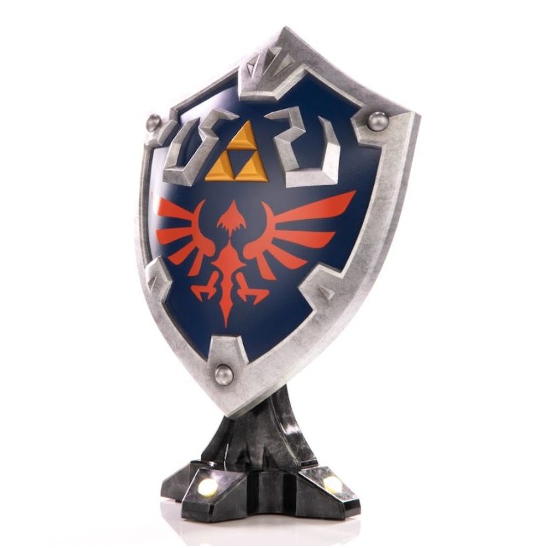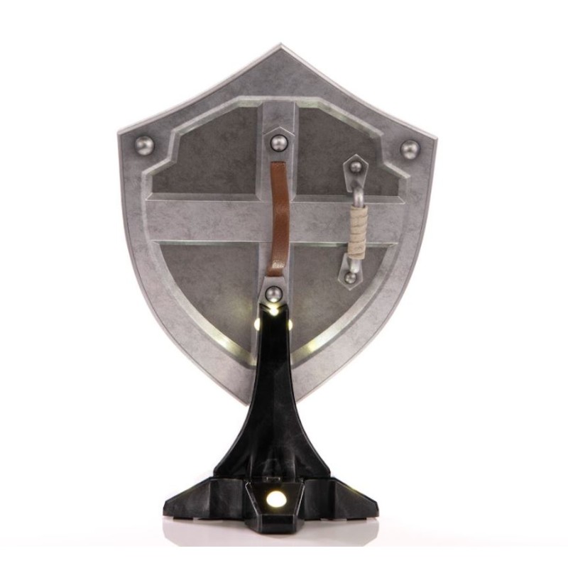 First 4 Figures ist stolz darauf, ihr neuestes PVC-Sammlerstück vorzustellen, den Hylianischen Schild aus The Legend of Zelda™: Breath of the Wild. Link, der Held von Hyrule, verfügt über eine Vielzahl von Waffen, Rüstungssets und Schilden auf seiner Erkundungstour durch das riesige Königreich Hyrule zur Verfügung, aber eines seiner ikonischsten Ausrüstungsstücke Ausrüstung in der gesamten The Legend of Zelda™-Serie ist der Hylianische Schild. Die blaue Vorderseite Die blaue Vorderseite mit den silbernen Rändern, das Triforce-Symbol und das Wappen von Hyrule sind die Grundpfeiler des klassischen Design, und diese besondere Statue wurde vom Design von The Legend of Zelda™ inspiriert: Breath of the Wild. Der Hylianische Schild lässt sich magnetisch an dem mitgelieferten Ständer befestigen, der einfach gestaltet ist, aber den Schild selbst perfekt zur Geltung bringt. Die Collector's Edition dieser Statue verfügt über eine helle LED-Funktionalität unter den der goldenen Nieten des Ständers, die dem Schild ein noch majestätischeres Aussehen verleihen! The Legend of Zelda™: Breath of the Wild - Hylian Shield (Collector's Edition) wird mit dem Folgenden geliefert: - The Legend of Zelda™: Breath of the Wild - Hylianischer Schild PVC-Statue - Magnetischer Display-Ständer (mit LED-Lichtfunktion) - F4F-Broschüre mit 500 F4F-Belohnungspunkten enthalten