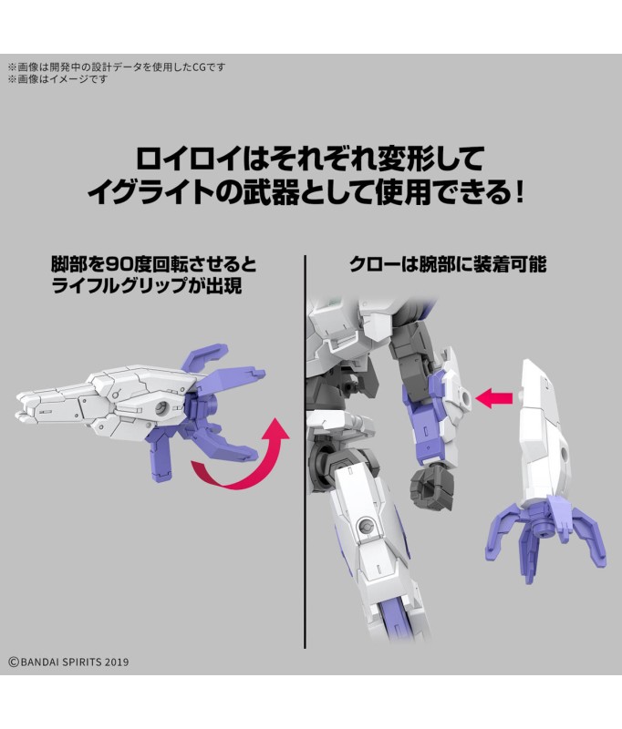 Two new designs of the 30MM support mecha, the Royroy, are included. You can easily enjoy the feeling of belonging to a unit with just one kit!