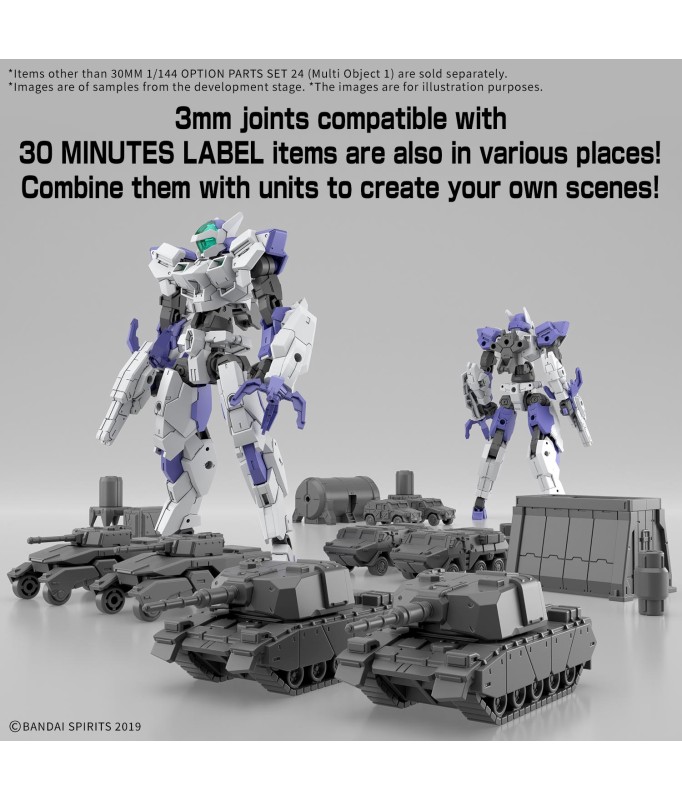 This optional parts set from Bandai features 1/144-scale vehicles and scenery parts that bring the world of "30MM (30 Minutes Missions)" to life! The windows, tires, and other details are meticulously recreated, and 3mm joints are used for the articulated parts and connections, making this set compatible with other "30MM" items. Place your order today!
