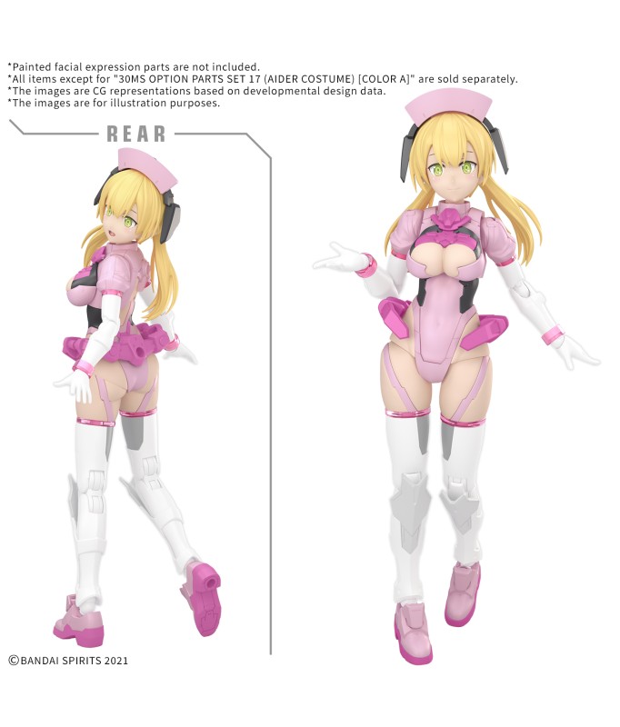 This set from Bandai allows you to customize your "30MS (30 Minutes Sisters)" figure with a nurse-style outfit! The parts are carefully arranged on the runners to optimize fast and easy assembly; two unprinted faces are included, as are two FP-I head parts, which can be combined with the "30 Minutes Sisters Water Transfer Decal Universal" to create expressive characters! Parts for her hairstyle and headband are included; a large number of ring-type joint parts that can be attached to her arms and legs are also included. The "30 Minutes Sisters" lineup includes face parts, hairstyle parts, and body parts; you can create your own sister by combining them with separately-sold parts! 3mm joints common to the "30 Minutes" series can also be used with this set. Please note that a figure kit is not included and is sold separately. Includes: Body parts (x1 set) Joint parts (x1 set) Unpainted face parts (x2) Head parts (x2 types) Hairstyle parts Neck parts (x1 set)