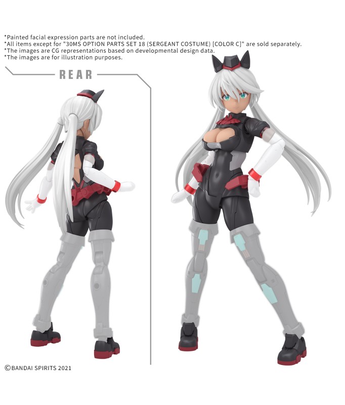 This set from Bandai allows you to customize your "30MS (30 Minutes Sisters)" figure with a military-style outfit! The parts are carefully arranged on the runners to optimize fast and easy assembly; two unprinted faces are included, as are two FP-I head parts, which can be combined with the "30 Minutes Sisters Water Transfer Decal Universal" to create expressive characters! Parts for her hairstyle and headband are included; a large number of ring-type joint parts that can be attached to her arms and legs are also included. The "30 Minutes Sisters" lineup includes face parts, hairstyle parts, and body parts; you can create your own sister by combining them with separately-sold parts! 3mm joints common to the "30 Minutes" series can also be used with this set. Please note that a figure kit is not included and is sold separately. Includes: Body parts (x1 set) Joint parts (x1 set) Unpainted face parts (x2) Head parts (x2 types) Hairstyle parts Neck parts (x1 set)
