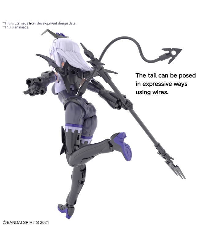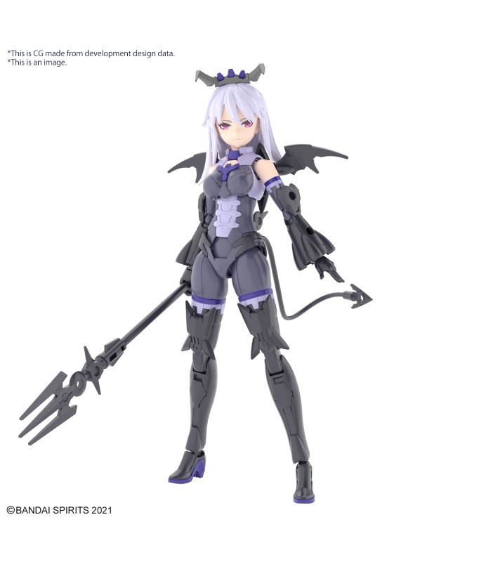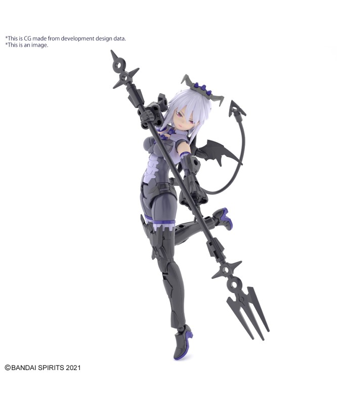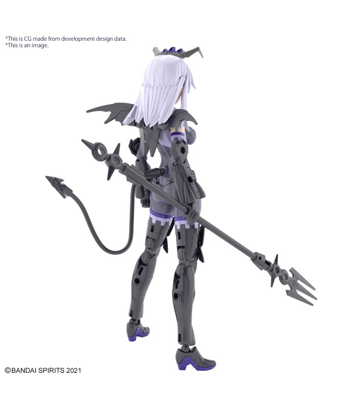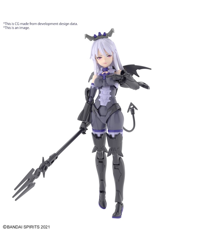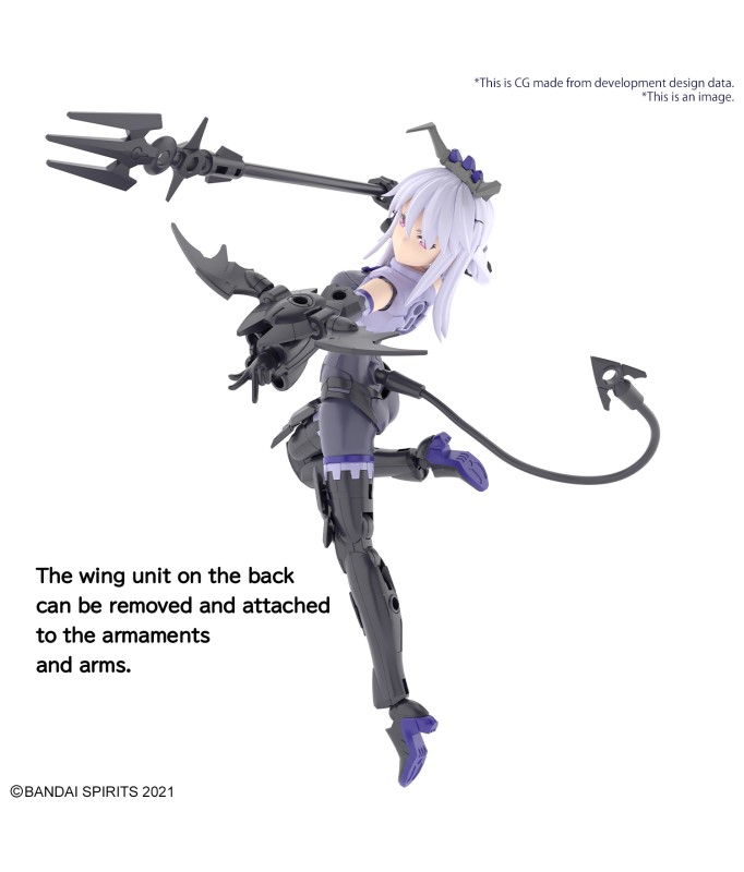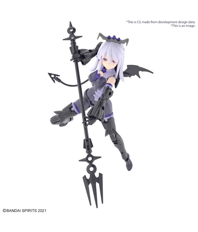 Nevalia is ready to bring her wicked style to Bandai's "30MS (30Minutes Sisters)" figure-kit lineup! This model kit includes parts to build both Nevalia herself, including interchangeable facial expressions, and armor. Assembly is smooth and easy, and her three different face parts -0- normal, smiling and damaged -- are tampo-printed. The wing unit on her back can be removed and attached to weapons or armor, and she's equipped with newly designed high-heeled shoes, too! The tail can be attached with a lead wire; combined with her hair ornaments and weapons, she's definitely cute in a devilish way! And of course she's compatible with other "30MS" weapons, armor and accessories. Order her for your own collection today! Includes: Interchangeable faces (x3) Armor parts Hand parts Joint parts Lead wire