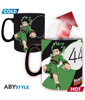 The battle between Gon and Hisoka at the Heavens Arena is a turning point in Gon's character development. The two exchange many explosive blows, and Gon finally gets to give back Hisoka's badge from the Hunter exam! You'll find both of them on this Hunter X Hunter heat change mug.