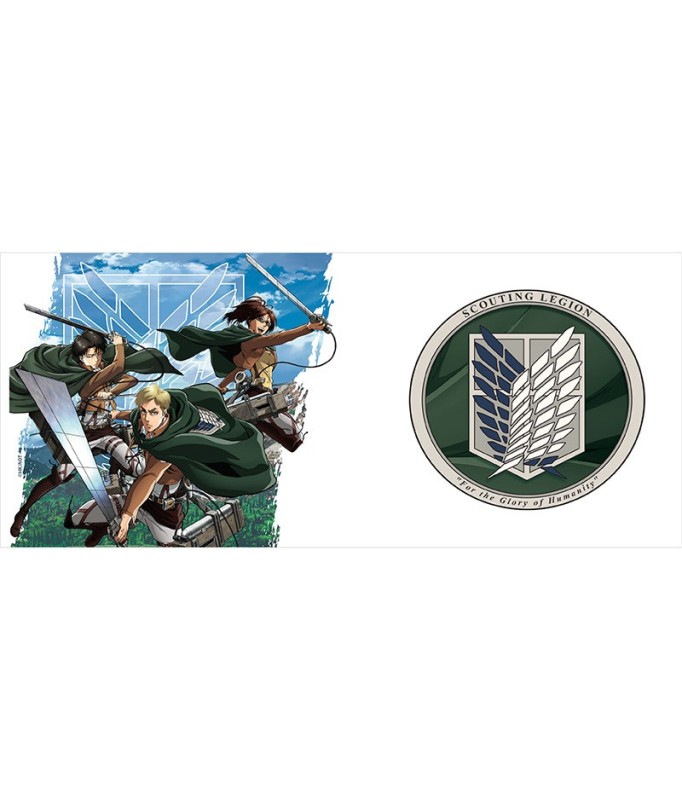 Dive into the world of Attack on Titan with this ABYstyle mug featuring Levi Ackerman, Erwin Smith, and Zoë Hange, iconic heroes of the Scout Legion. Designed for anime fans, this mug combines high quality, durability, and an authentic design true to the series. Show off your passion from the first sip with this official Attack on Titan product.