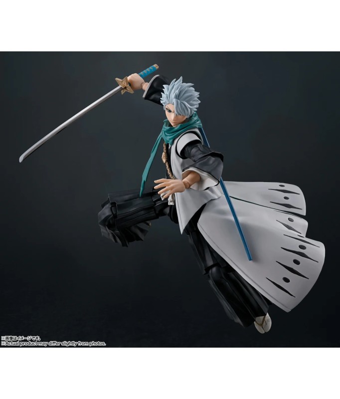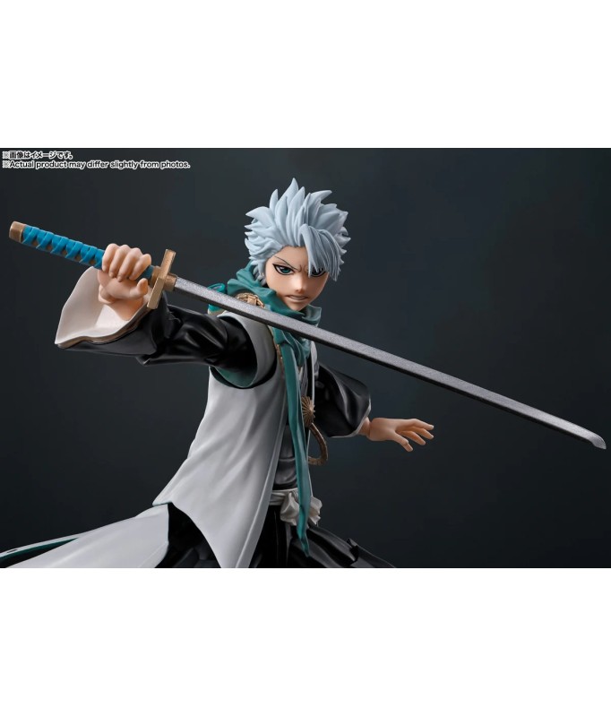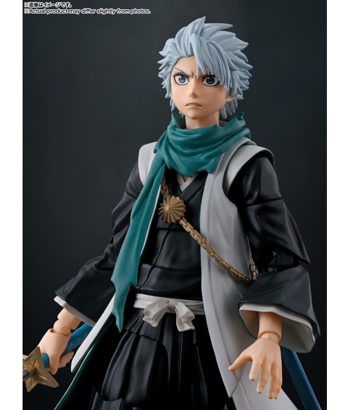 Tamashii Nations presents, as part of the S.H. Figuarts collection, the Toushiro Hitsugaya figure. The 13th Guards Captain measures 13.5 cm and is based on his appearance in the anime "Bleach: Thousand Year Blood War". Includes 4 face parts (screaming, surprised, staring and clenching face), 2 left hands, 3 right hands and 1 Zanpakuto sword. What's more, you can show him in different poses, sheathing and re-sheathing the sword.