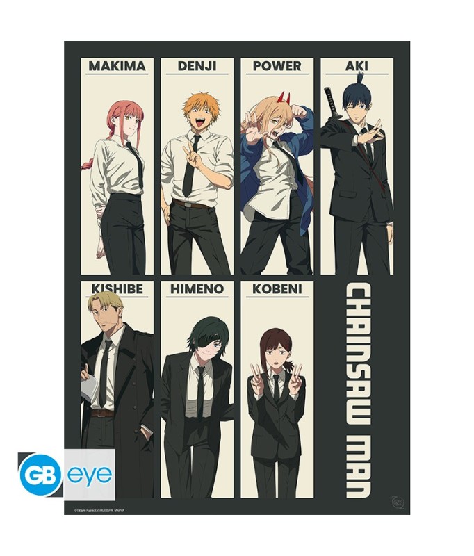 Join the Devil Hunters! If hunting down devils is one of your new passions, proudly display this superb Chainsaw Man poster by GB Eye! It features all your favourite Hunters: Denji, Aki, Power, Makima, Himeno and even Kishibe!