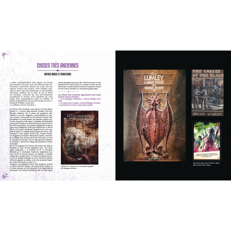 Game in French. Go back to the roots of horror! "In his home of R'lyeh, the dead Cthulhu waits in dreaming. And yet, it seems that in recent years, H. P. Lovecraft and his monsters are more active than ever. Permeating pop culture in all its facets, from cinema to video games to comics, Lovecraftian work has tightened its tentacles around the cultural production of recent decades. It thus inexorably infuses our dreams with its cosmic abomination... But where do these creatures come from and who are their creators? At the source of the horror is of course the writer, but also other minds presented in this book, such as Clark Ashton Smith, Lord Dunsany, Frank Belknap Long or Catherine L. Moore. All of them have contributed to the list of the main avatars of the work, such as Dagon, Yog-Sothoth, Nyarlathotep and of course Cthulhu, gathered here in an illustrated and hierarchical bestiary. Through detailed portraits and thematic analyses, dive into the heart of Lovecraft's dark and unspeakable myths! 400+ colour illustrations