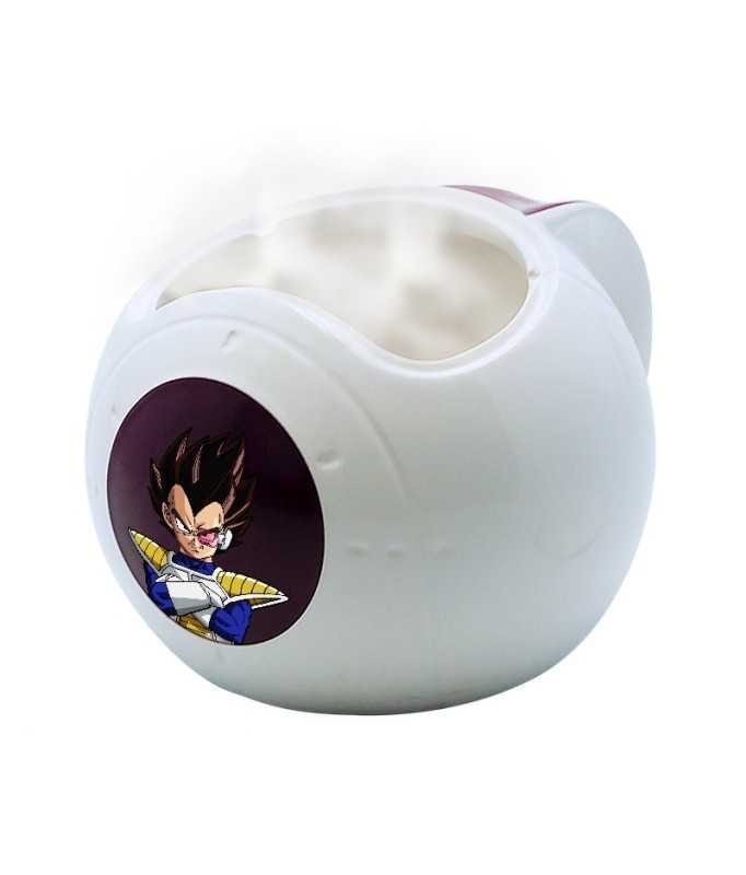 This 3D Dragon Ball mug represents the ship used by the Saiyans to travel through space. Pour in your hot drink and Vegeta will appear!