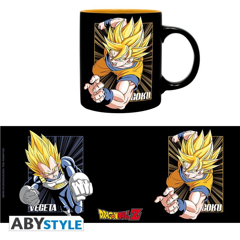 Goku and Vegeta transformed into super Saiyans take on their enemies on this Dragon Ball Z mug by ABYstyle. - Standard capacity (320 ml). - Exceptional printability: withstands over 800 dishwasher cycles. - Microwave safe - Packaging: PVC crystal box to protect the mug while ensuring 360° visibility.