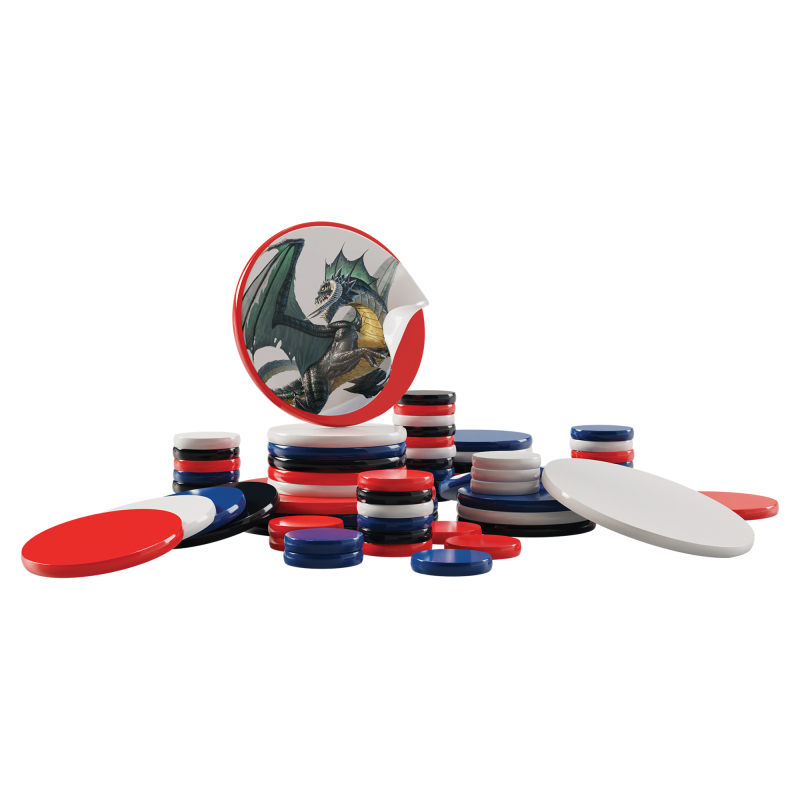 · 64 weighted plastic discs that come in 3 sizes and 4 colors for maximum flexibility in encounter creation—40 medium-sized creature tokens, 20 large-sized creature tokens, 4 huge-sized creature tokens
