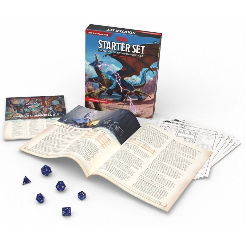 The Starter Box: Dragons of Stormy Isle offers action-packed adventures in the Dungeons & Dragons role-playing game, where heroes battle monsters, hunt for treasure, and embark on epic quests . This box contains the essential rules of the game as well as everything you need to embody heroic characters who find themselves embroiled in an ancient war between dragons during their exploration of the Isle of Storms.