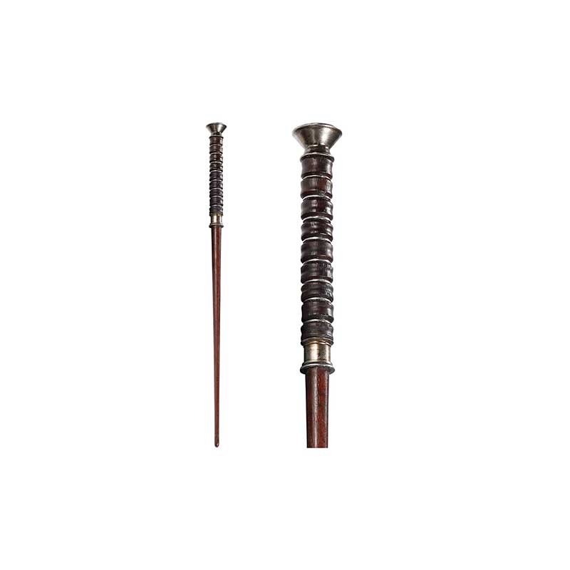 Authentic and official replica of Harry Potter's wand from the Harry Potter films. This resin wand is presented in an Ollivander collection box, with a velvet case, moulded to the shape of the wand. Two veils on each side of the box cover it to give it a noble appearance. The wand imitates holly wood with a handle similar to raw bark.